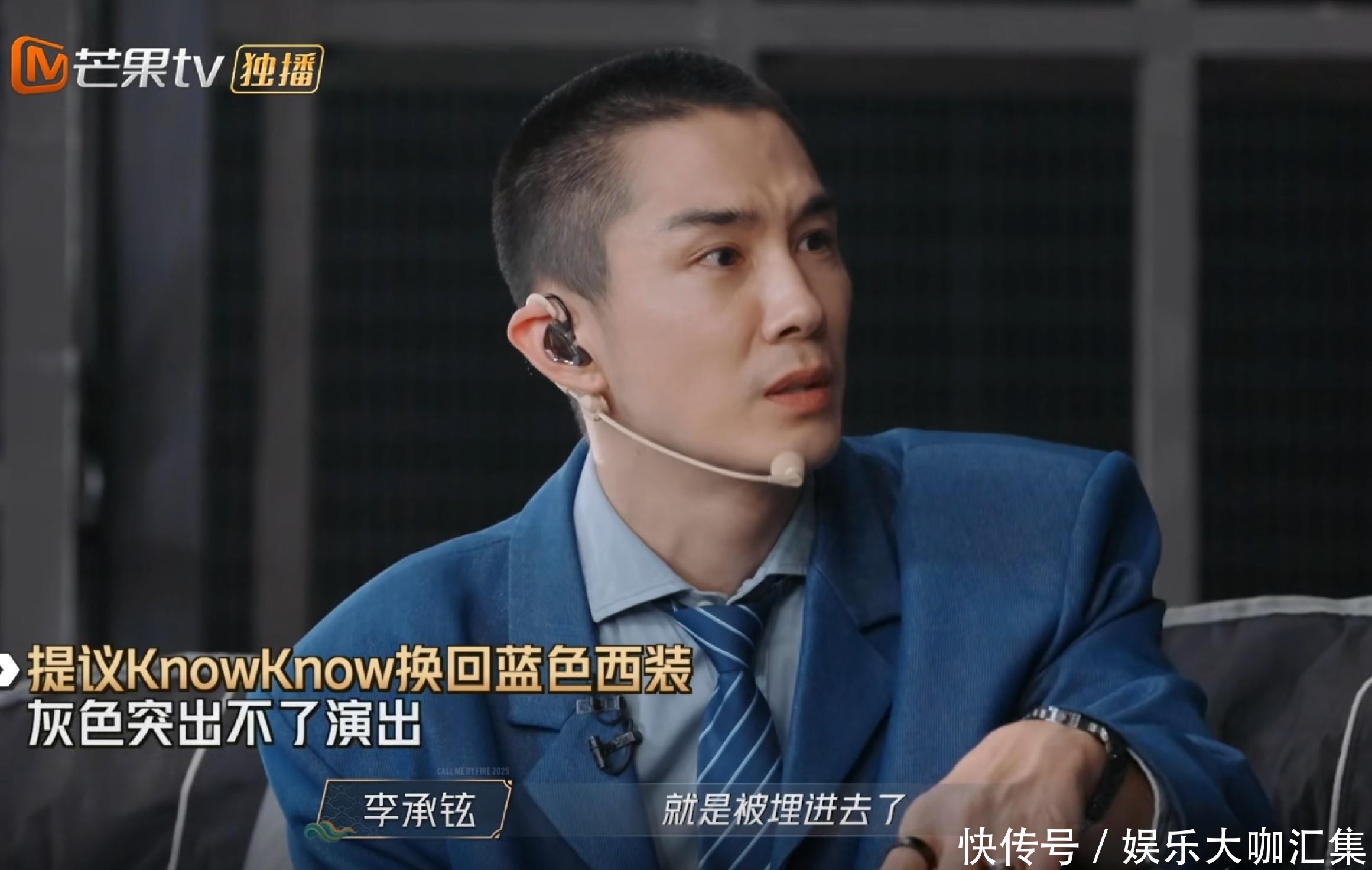 43. 接着,李承铉提议:其余三人穿蓝色服装,唯独KnowKnow穿灰色,以此形成视觉焦点。